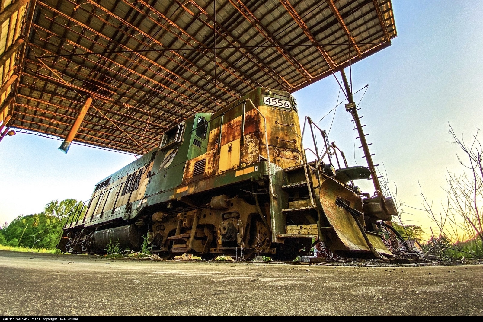 On the way down to Atlanta, I felt like it would only be right to stop in Lavonia on the way, to see what they had over in the sheds. Not too my surprise, the Ex-CNW, HRT 4556, was the only one in sight there. What WAS surprising to me however, was the fact that it was under the SECOND shed, which I personally have never see it do. So as the sun sets below the horizon, I lay down with my fisheye lens, and snapped this low angle golden hour shot.