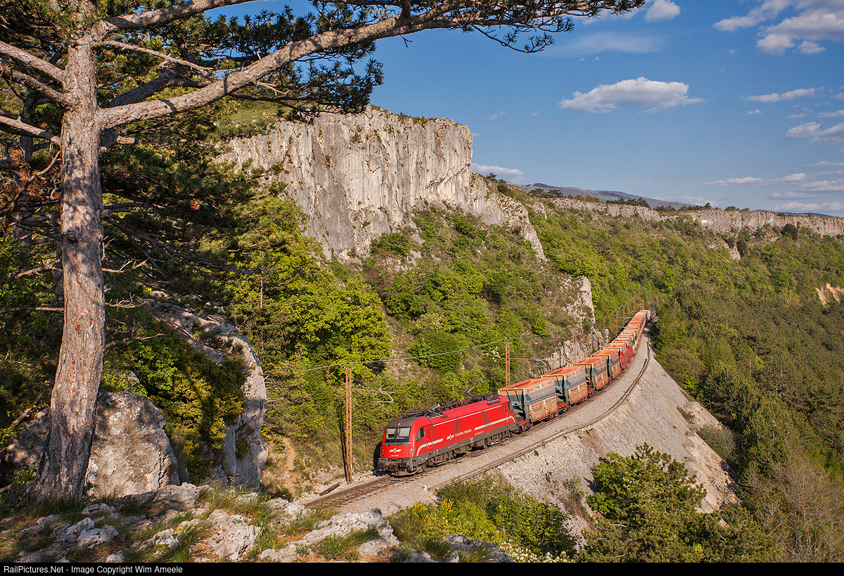 Known photopoint on the spectacular Koper-Divaça railway line. Once you have spotted the train in the valley, it takes about 25 minutes to make it to the top. Enjoy it while you can, a tunnel is being constructed to deviate the traffic from the port of Koper.
