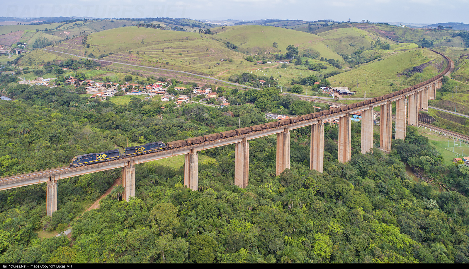 Northbound empty ore train led by AC44i #7238 crossing the huge viaduct located in Jeceaba city.