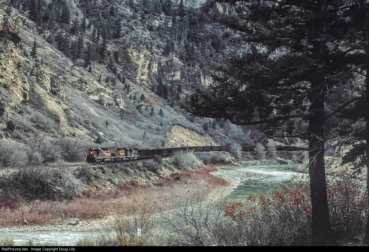 Coal from mines along the original Denver & Rio Grande Western main line moves east through Glenwood Canyon, Colorado.