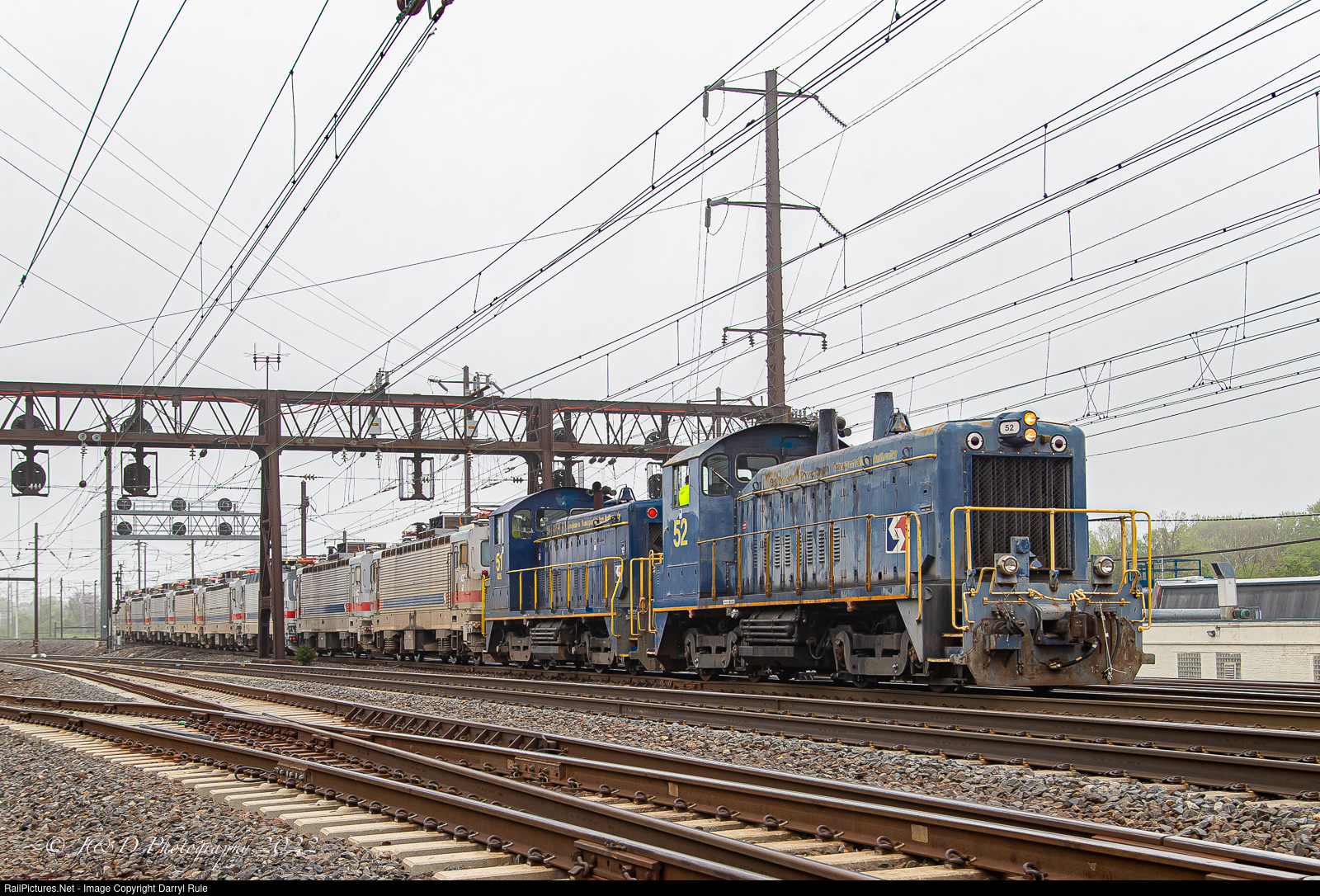 | After reversing at the interlocking east of MORRIS Tower, Extra 52 shoves the 8 SEPTA electrics on a track for pick up by COnrail Shared Assets who will deliver them to their final resting place. |