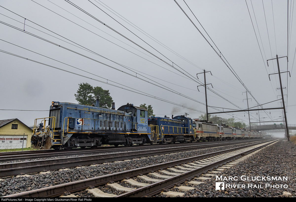 Diesel Hauled. Southeastern Pennsylvania Transportation Authority (SEPTA) SPAX 52 (née-MILW 2034, SW1200, EMD, 11/1954) and SPAX 51 (née-MILW 2021, SW1200, EMD, 11/1954) are limited to 25 MPH but still working hard as they pass though Levittown, Pennsylvania on Saturday, May 14, 2022. The train, "Extra 52", was bringing all 7 of SEPTA's AEM-7s and lone ALP-44M to Morrisville, Pennsylvania for interchange with Conrail Shared Assets, where they will ultimately be scrapped.