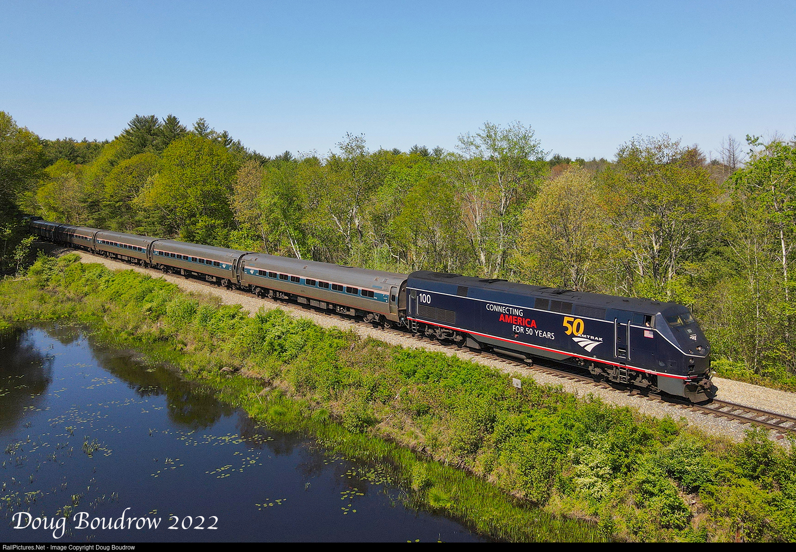 RailPictures.Net Photo: AMTK 100 Amtrak GE P42DC at Exeter, New Hampshire by Doug Boudrow