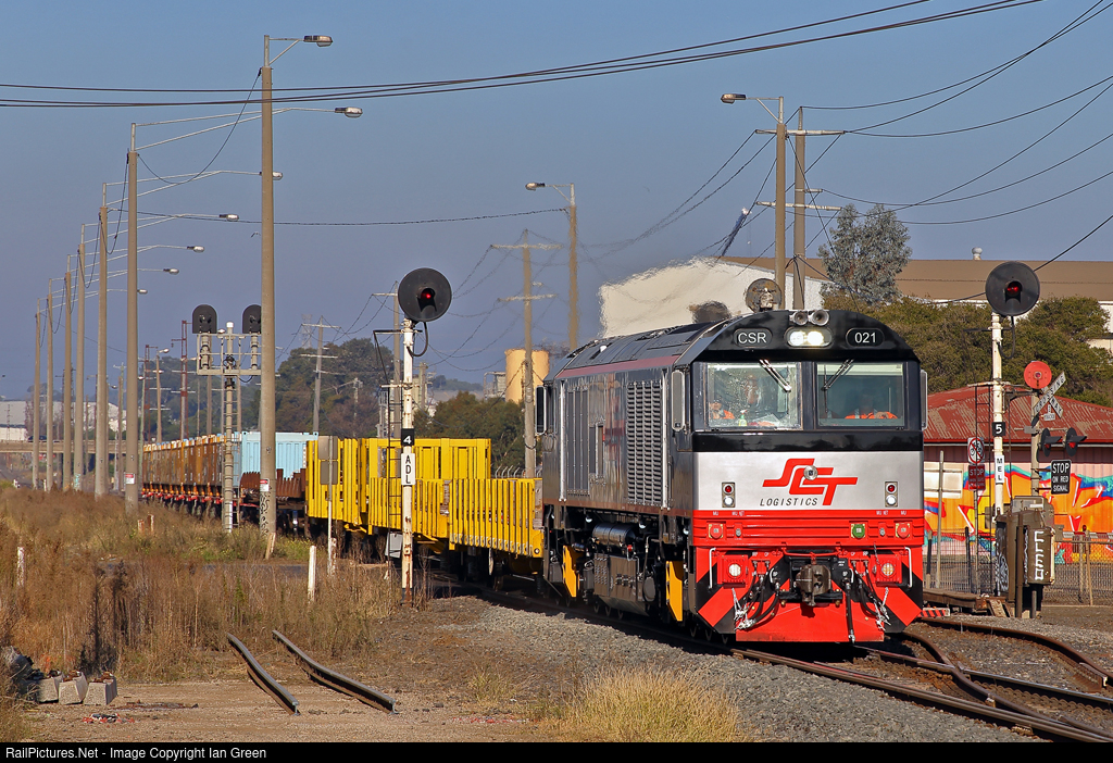 Brand new locomotive CSR021 works 7942V steel wagon transfer from Laverton to North Dynon through Brooklyn.