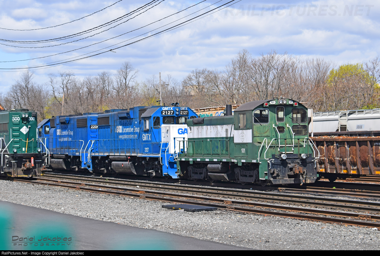 New York & Atlantic Railway power seen resting having day off on a quiet Easter Sunday morning.