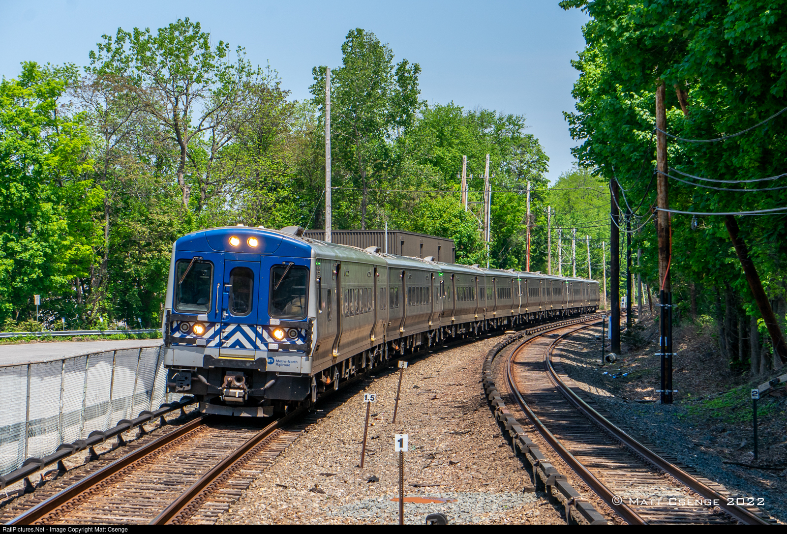 A southbound Harlem Line train is seen approaching Bedford Hills station en-route to Grand Central Terminal. These M7As are the mainstays of the Harlem Line - the only Metro-North line exclusively used by Metro-North - though daily service does see some older M3As as well as diesel-hauled trains bound for the far-flung terminus at Wassaic.