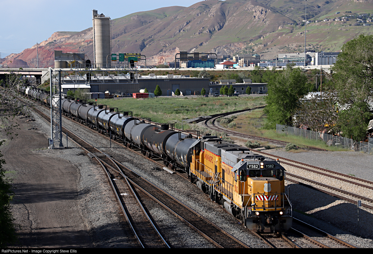 | UPY 582, and 573 near Roper yard with the Chevron local, as the pass under the 13th south overpass. |