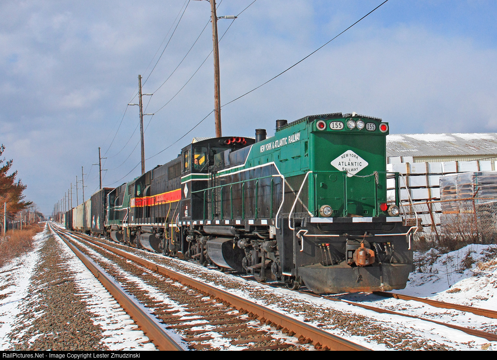 | Just about to get underway to move the gons filled with construction debris are New York & Atlantic MP15AC: 155,