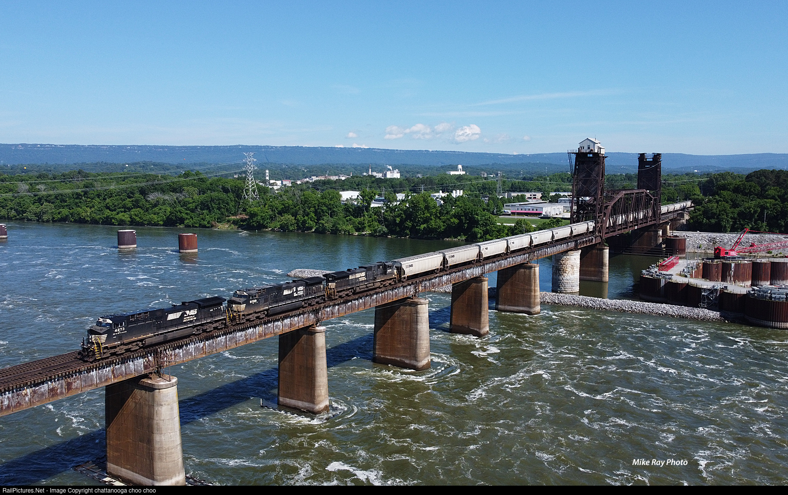 NS 50R crosses the rain swollen Tn river @ Chattanooga Tn