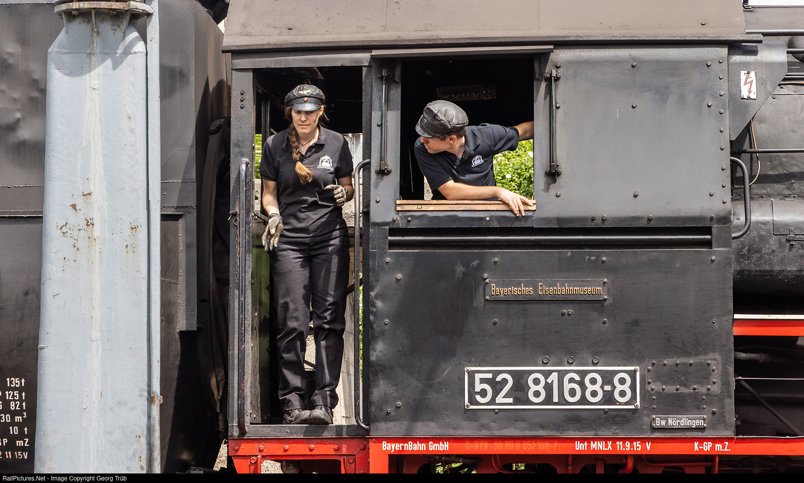 The 2-10-0 freight steam locomotive 52 # 8168 of the Bavarian Railway Museum in Nördlingen (BEM) has a fairly young crew, including a woman as stoker. Surely great as a couple to look after and drive such a locomotive! The 52 # 8168 was built by Krauss-Maffei AG (München-Allach) in 1943 for the Deutsche Reichsbahn as 52 # 3574. After WW II owned and operated by the Deutsche Reichsbahn (DR) of the German Democratic Republic (GDR). In 1966 reconstructed in the RAW Stendal to 52 # 8168 and 1992 withdrawn, purchased by the BEM. From 1992 to 2008, the locomotive waited for an examination. Already in 2005, the refurbishment was to be tackled, but it was not until December 19, 2007 that the boiler inspection could be completed. The locomotive was then put back into service at Easter 2008 after three years of refurbishment. In November 2008, some rework was done on the locomotive at DLW Meiningen. During the subsequent test run, damage occurred to the locomotive's governor, so that it had to be towed back to Meiningen. During the transfer trip to Nördlingen on November 27, 2008, the locomotive again suffered damage and had to be towed back to Meiningen for the second time. In the winter of 2011/2012, the locomotive received a boiler inspection in Nördlingen. On May 3, 2012, the load test run took place in front of a freight train to Gunzenhausen. The locomotive took part in the BEM's facing steam and photo train event around Nördlingen in May 2018. The locomotive was exhibited at Göppingen station on the occasion of the Märklin Days 2019 on September 14 and 15, 2019. The locomotive was used in front of heavy freight trains on the lines around Nördlingen during the "Rübenverkehr im Ries" plan steam event on September 23 and 24, 2021.