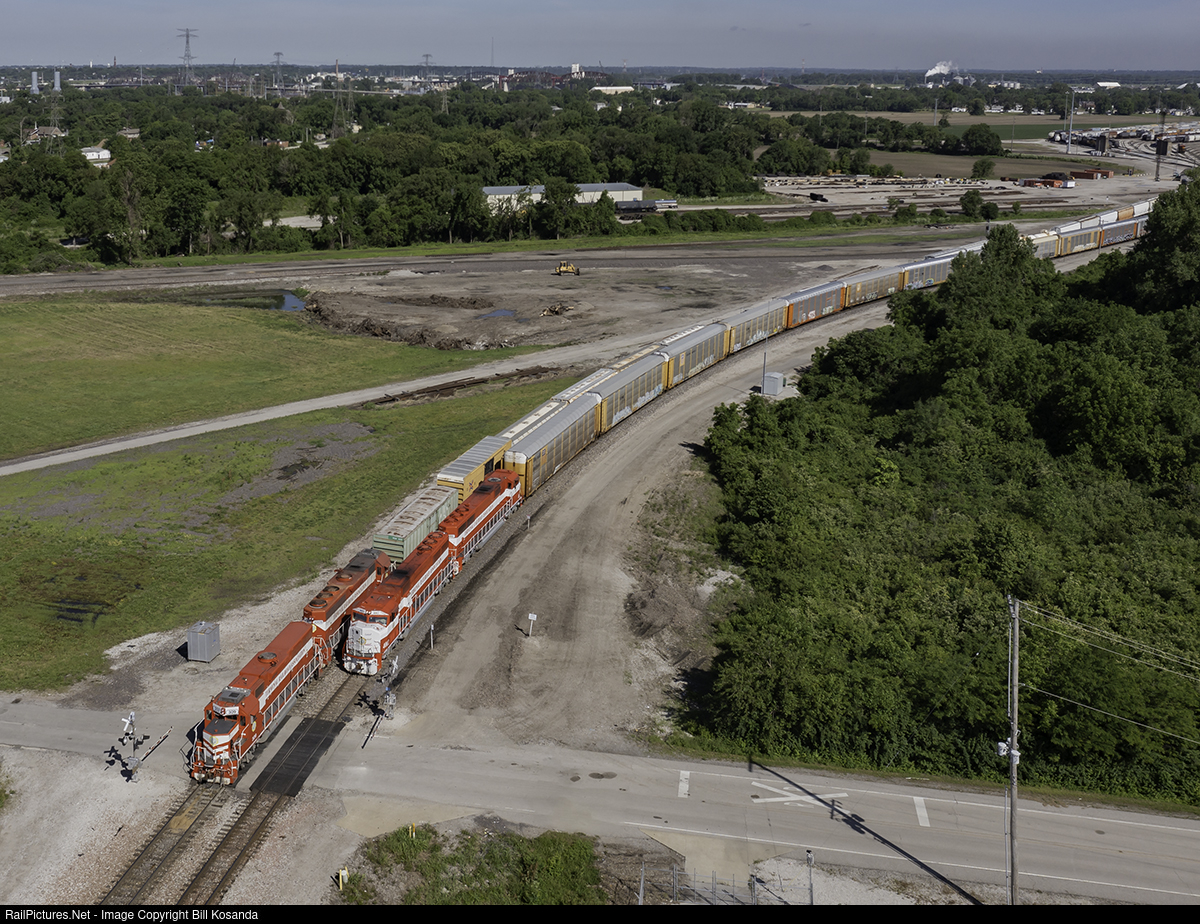 Two sets of Terminal Railroad power are seen sorting cars at the south end of the Madison yard. A GP40M-3 with a slug and a pair of SD60Is.