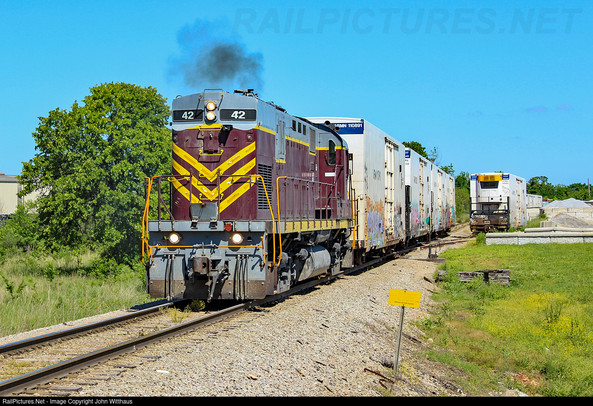 | A&M ALCO's in 2022: Already finished with a majority of their work for the day, the Rogers local heads back to Springdale yard with a cut of reefers destined for Van Buren. 42 still wears its Ohio Central paint, and is formerly Erie Mining. |