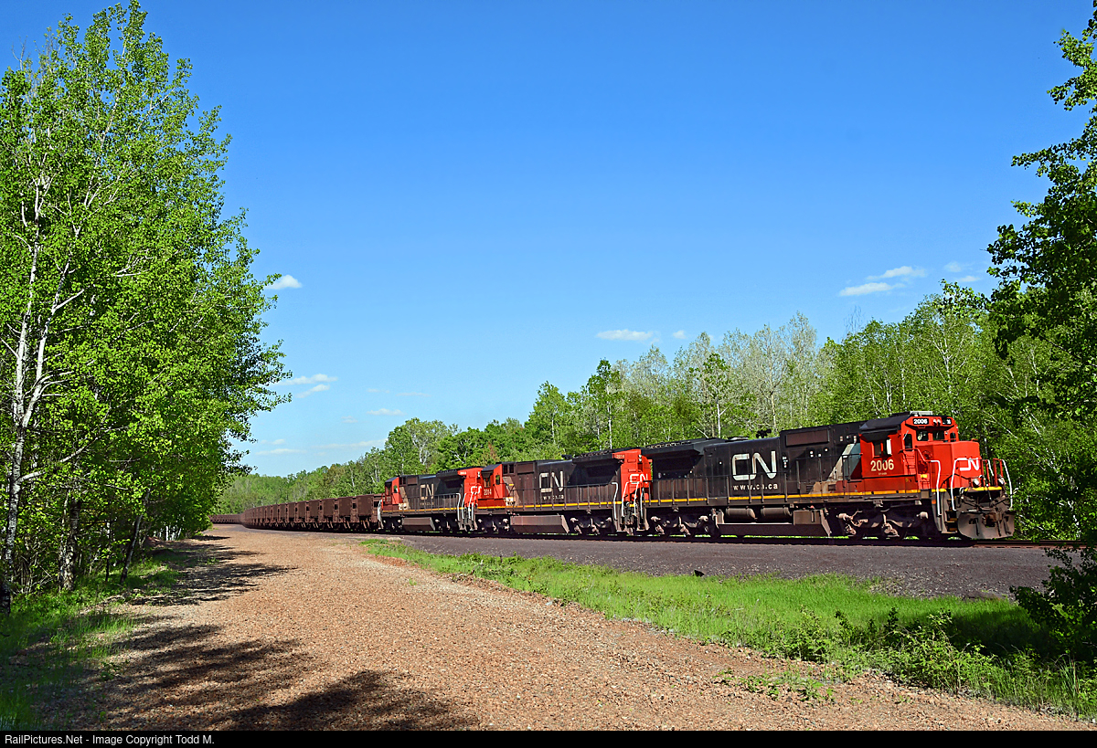 | Navigating the S-curve CN 2006 north is taking the turn on what was the former DM&N, then DM&IR and now the CN Iron Range Sub passing by the grade of the former D&IR which was abandoned in 1972. |