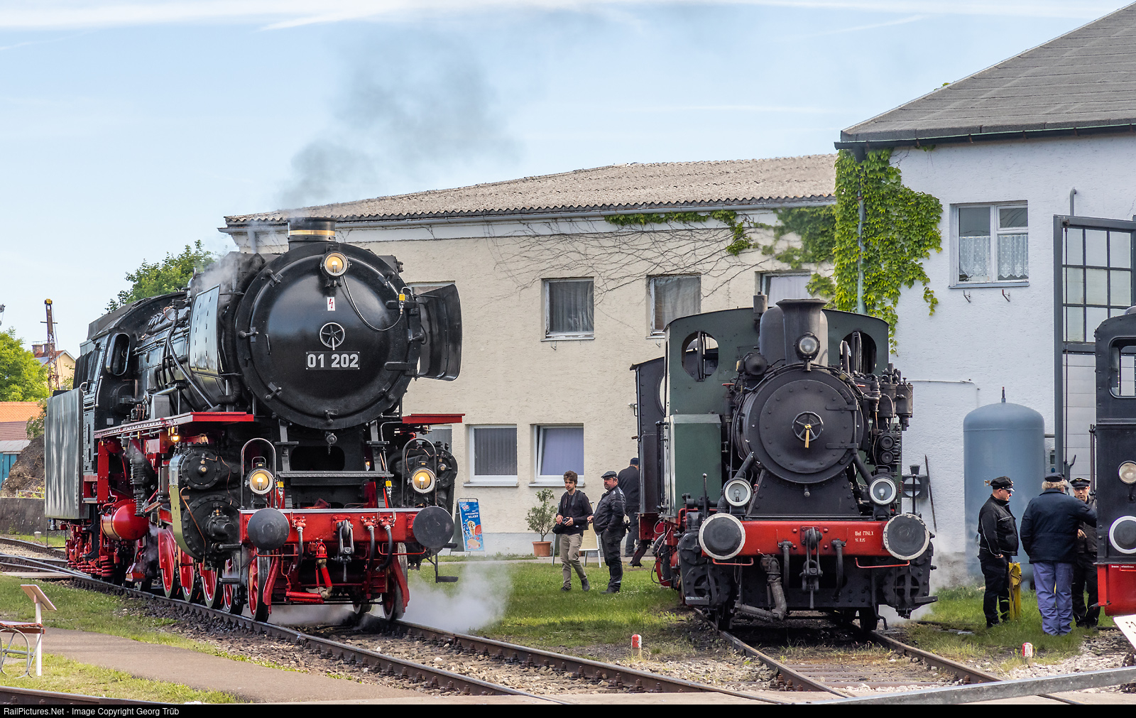 | 4-6-2 express train steamlocomotive 01 # 202 on a visit in the Bavarian Railway Museum in Nördlingen, and locomotive # 9 "RIES" of the BEM. |