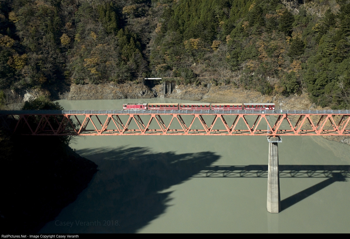 The Oigawa Railway Ikawa Line is known throughout Japan for the beautiful turquoise water of the Oi River...but they turn this color after a monsoon. The train is being pulled by a DD20, 6 of them were made for the very short tunnel clearance on this line, there are basketball players who are taller than these locomotives. The line was originally made to construct dams along the river but has since become one of the most popular scenic trains in Japan.