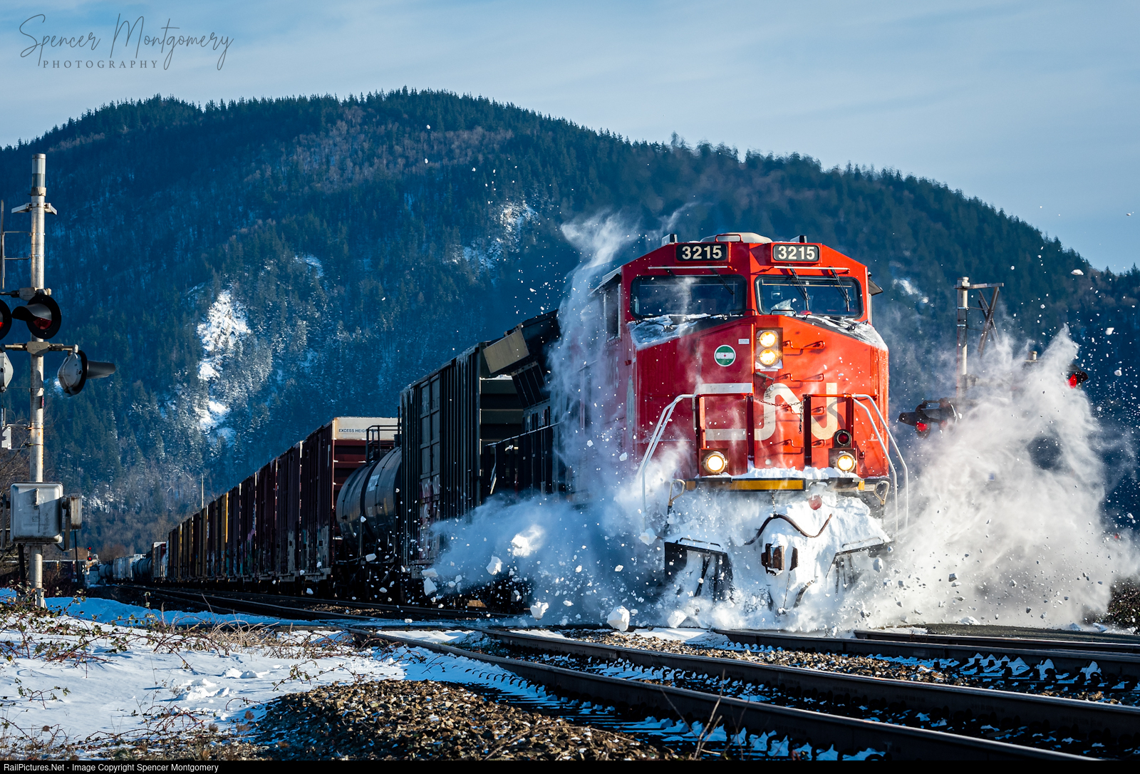 CN 311 hits a snow pile at Sumas Mountain on their trip west.
