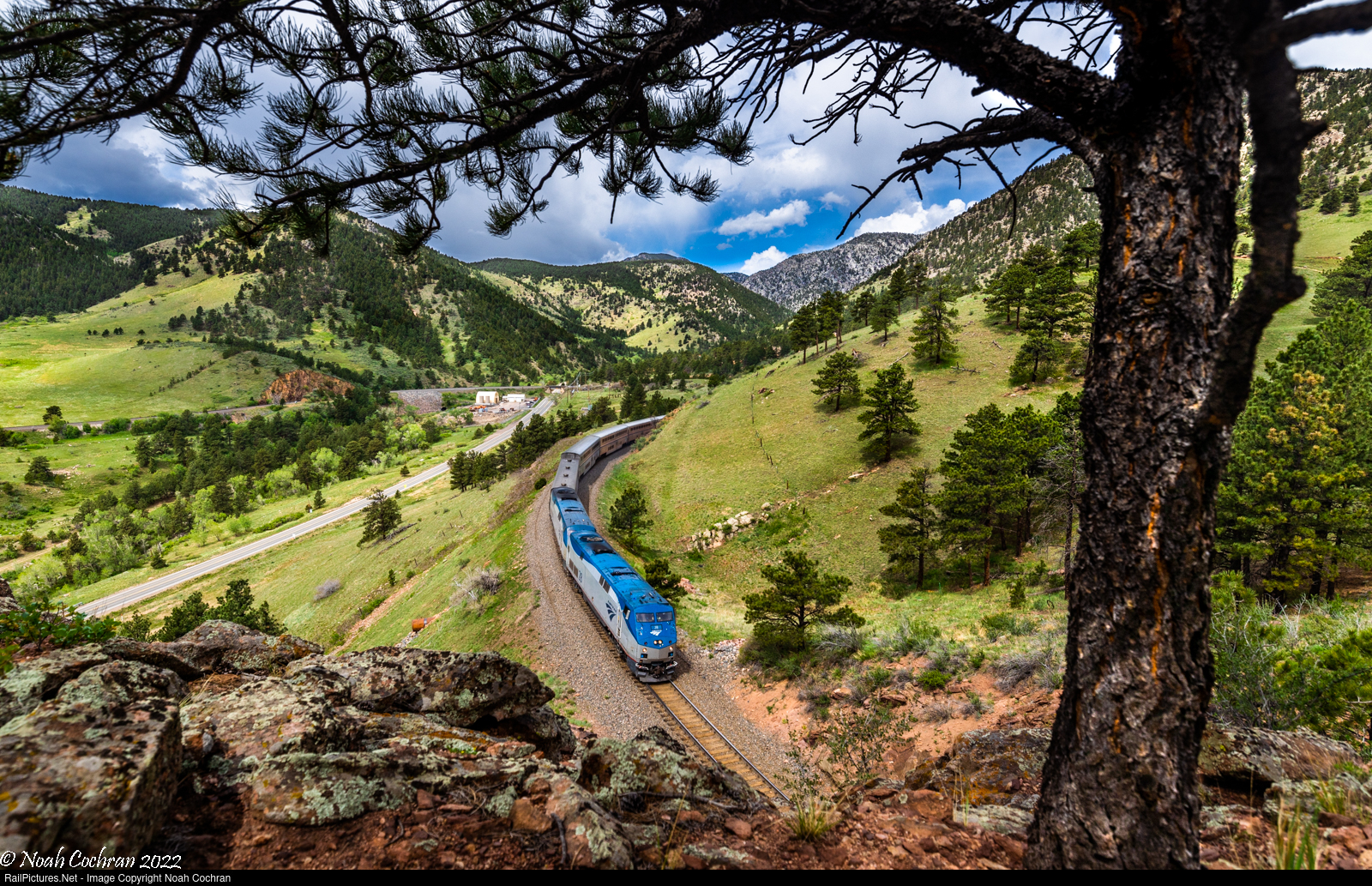 Led by a matched pair of GE P42DCs, Amtrak’s westbound California Zephyr begins its journey through the Rockies on UP’s Moffat Tunnel Subdivision, framed from atop tunnel 1 near Plainview, CO.