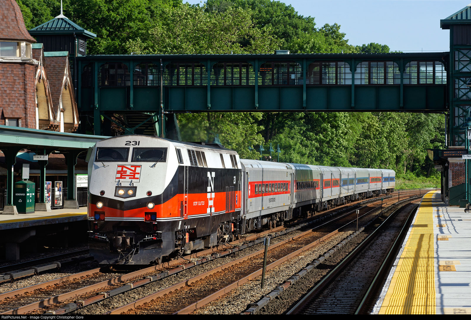 CDOT P32AC-DM 231 north past the Ardsley-on-Hudson station.