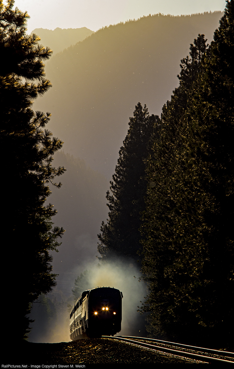 The Eastbound Empire Builder works through the Coulter Creek sag after successfully conquering Stevens Pass.