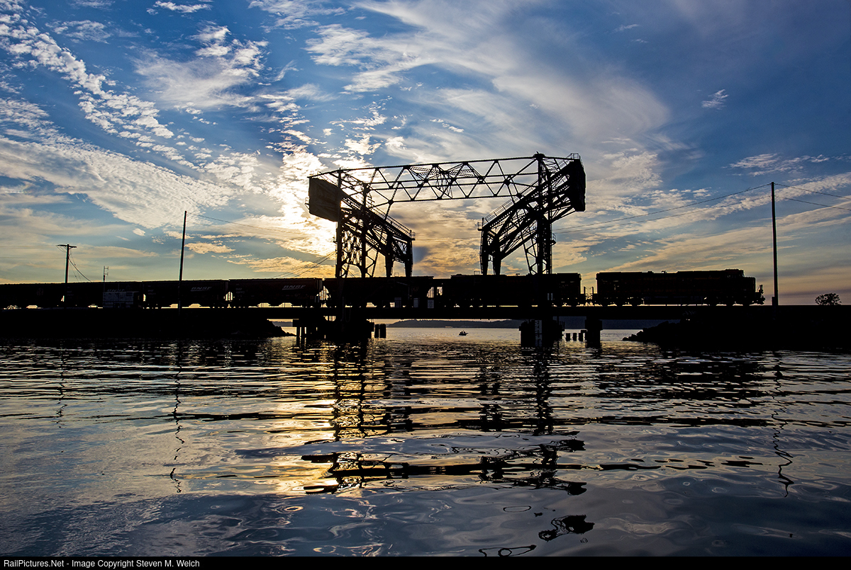 Grain empties race across Bridge 14 along the Puget Sound on a gorgeous Summer evening.