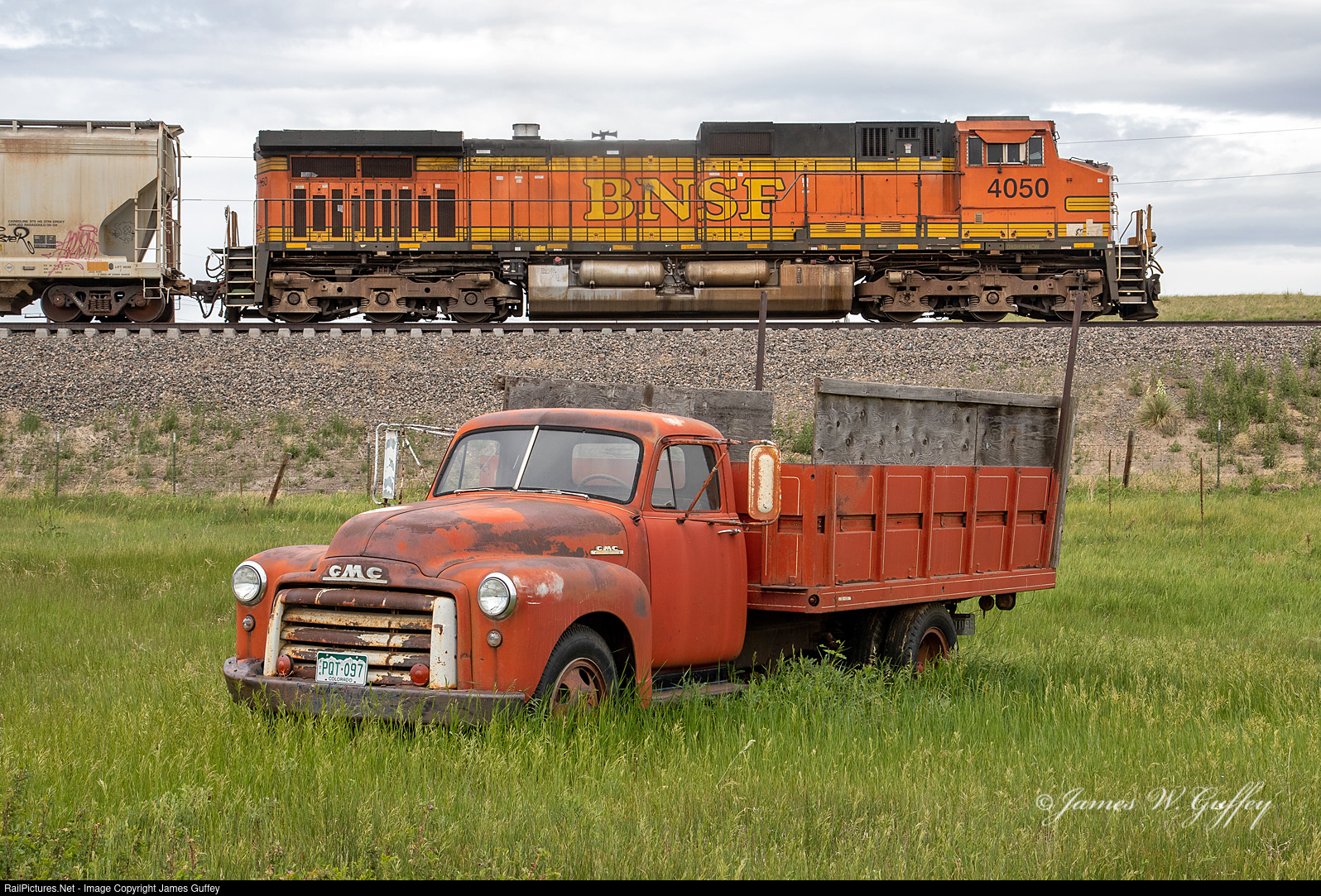 The DPU on a southbound freight passes an old GMC truck at Greenland.