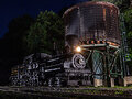 Cass Scenic Railroad shay #11 posed next to the iconic water tower for a night photo session.