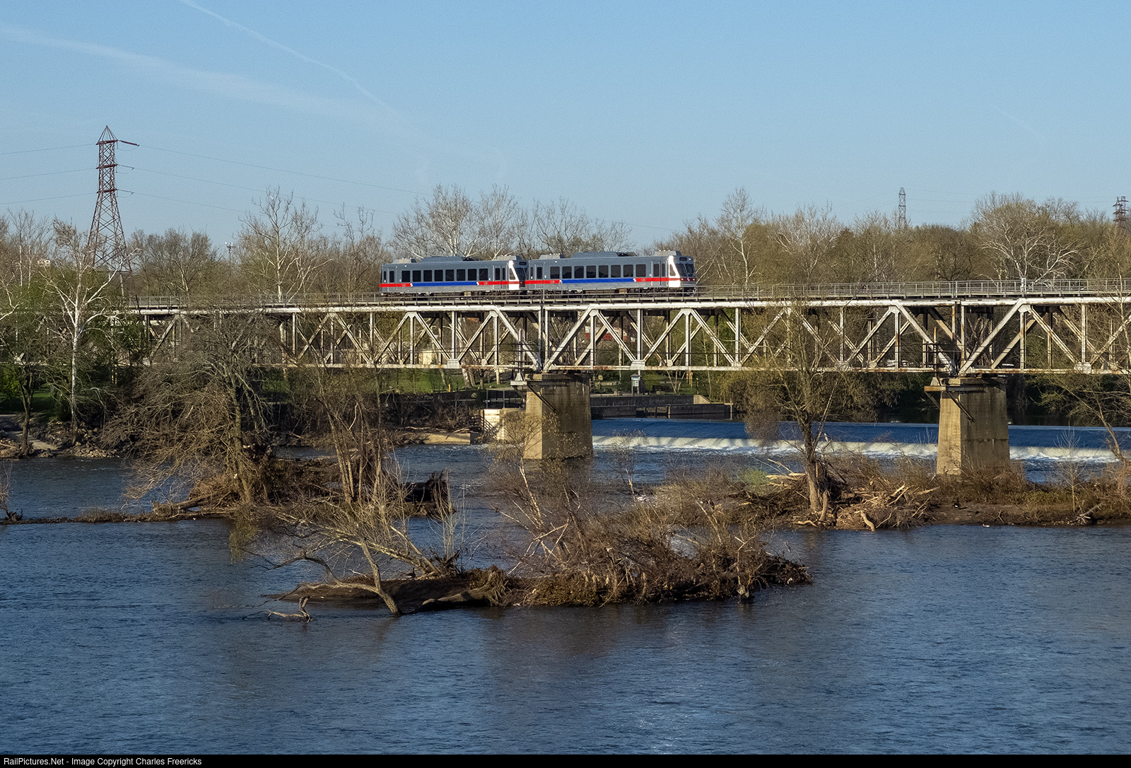 A pair of outbound N5 Norristown High Speed Line cars begin their trek over the long Schuykill River Bridge into the line's namesake city.