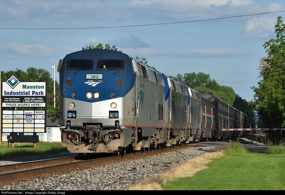 RailPictures.Net Photo: AMTK 182 Amtrak GE P42DC at Mauston, Wisconsin by Robby Gragg