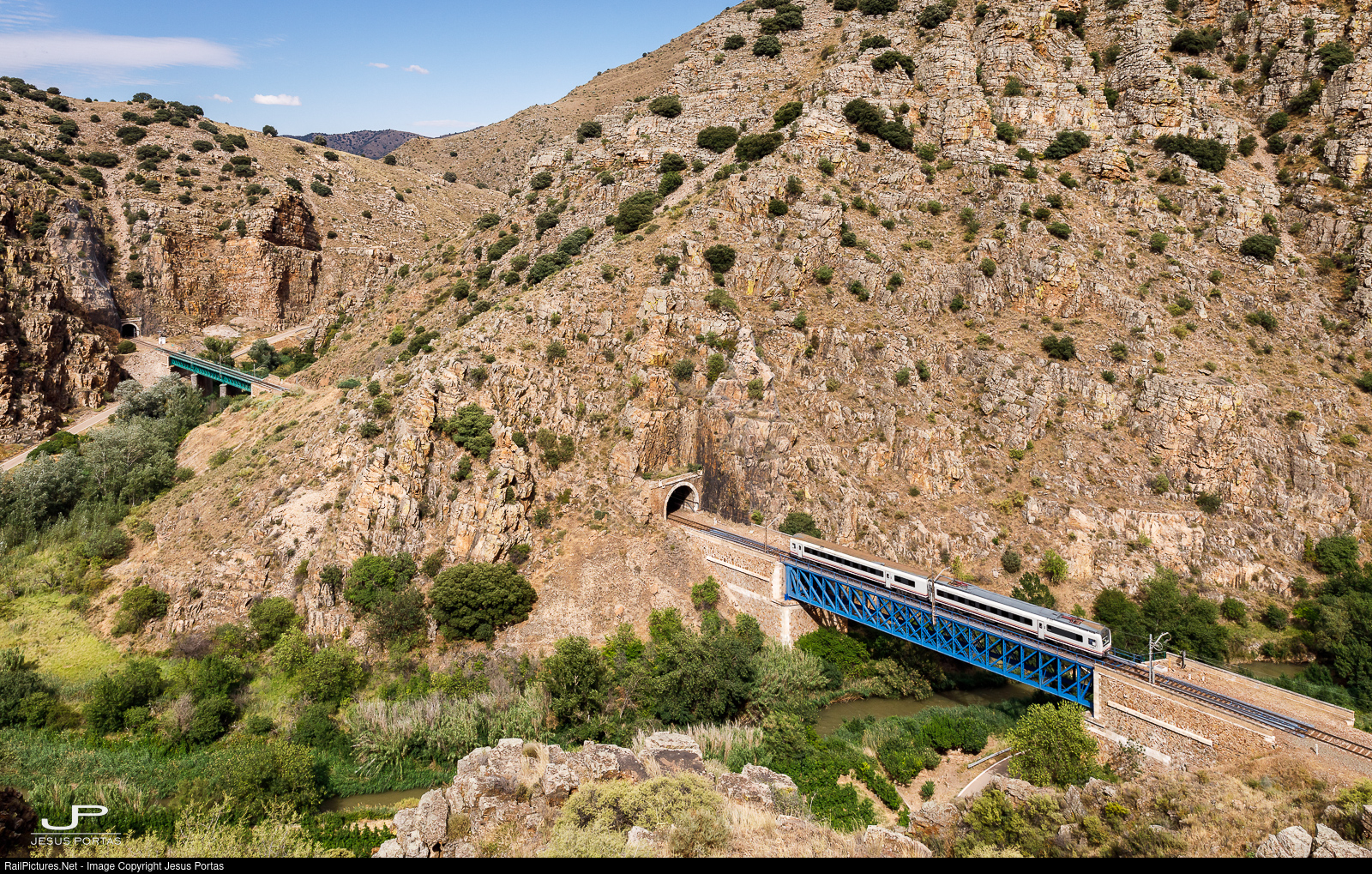 Regional 18753 Zaragoza Miraflores - Calatayud through the Jalon river canyon.
