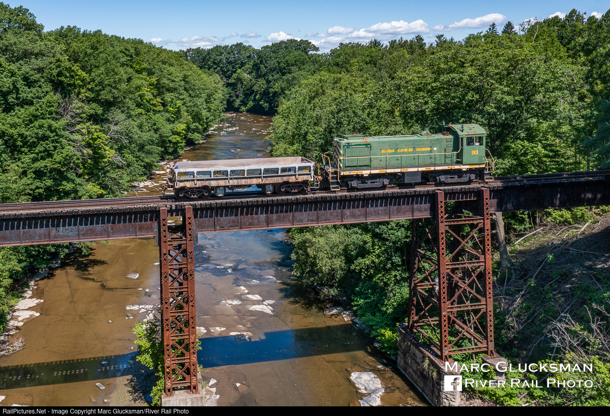 Back On The Road. Buffalo Southern 93 (Ex-South Buffalo, S4, 1951) has been recently reactivated and added to the railroad's fleet. The perfect job for this veteran switcher came around on Monday, June 27, 2022 as a single car move was necessary while the railroad also had to send a crew up to the interchange with Norfolk Southern. It was only the third time in over a decade that 93 has been on the road. The short consist is seen crossing Eighteen Mile Creek from Hamburg to Water Valley, New York on the former Erie Railroad line.