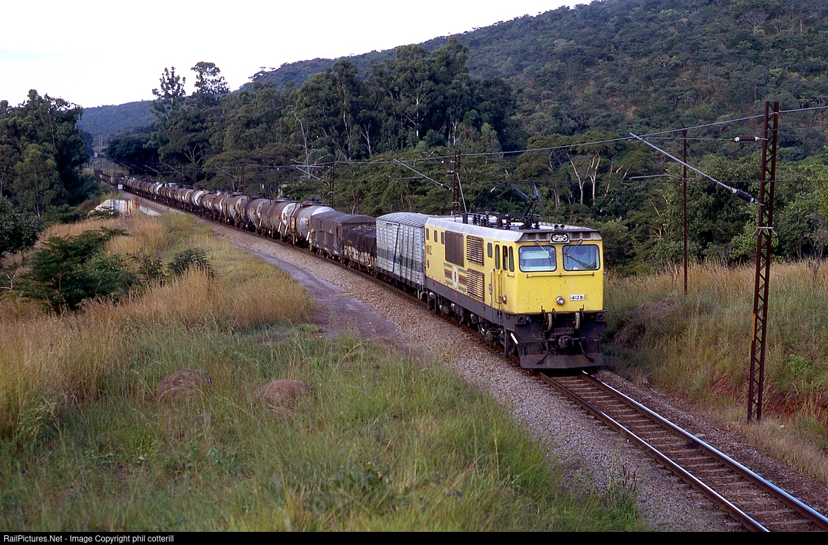 We visited zimbabwe in 1990, mostly to see the Garratt locos. However we caught this electric loco on a freight, near Harare. I labelled the photo "4128 at Hunyani River bridge, near Harare". Are there still electric trains in Zimbabwe?