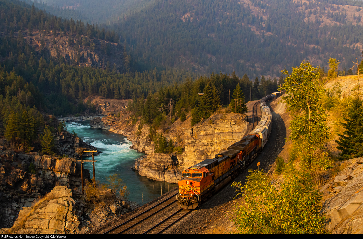 RailPictures.Net Photo: BNSF 4661 BNSF Railway GE C44-9W (Dash 9-44CW) at Kootenai Falls, Montana by Kyle Yunker