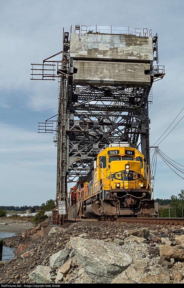 BNSF 181 Leads the Everett to Longview Manifest over Bridge 14 still in ATSF colors.