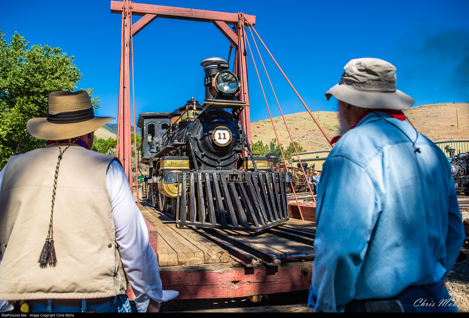 | After turning Virginia and Truckee No. 11 The Reno, 180 degrees on the turntable the museum personal stop to admire the engine. Built by Baldwin in1872 the engine is being restored to operational condition. |