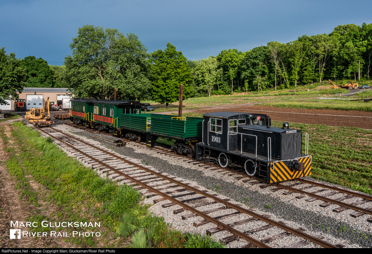 Storm Light. A brief moment of sunshine appeared on the afternoon of Saturday, May 28, 2022 in between ferocious rain storms, allowing for a timely capture of the Gray Granite Railroad’s operating train at Cavanna's Farm in South Glastonbury, Connecticut. The 1903 35-ton Plymouth was sitting and its train of a converted 1903 New Haven Railroad box car and 2 former Long Island Rail Road cabooses has already been operating here for several years, but with the addition of 1.1 more track miles will soon have a chance to stretch its legs even more