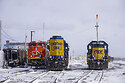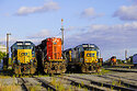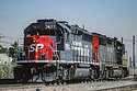 Southern Pacific GP40-2 7677, built by EMD in March 1980, was photographed on a dark day in American history – September 11. No, not that really dark day in US history, but the one that was a dark day for fans of the Southern Pacific, when the Union Pacific's merger with the Southern Pacific took effect. SP 7677 had been repainted after the SP's merger with Denver & Rio Grande Western into the new SP "Speed Lettering" scheme, reflecting the fact that Rio Grande had purchased the Southern Pacific Transportation Company on 10/13/88, with the new road keeping SP's scarlet and gray paint scheme but modifying the lettering. SP 7677, which features the unusual italicized nose initials, is seen here teamed with SP GP40-2 7952. (City of Industry, California – September 11, 1996)