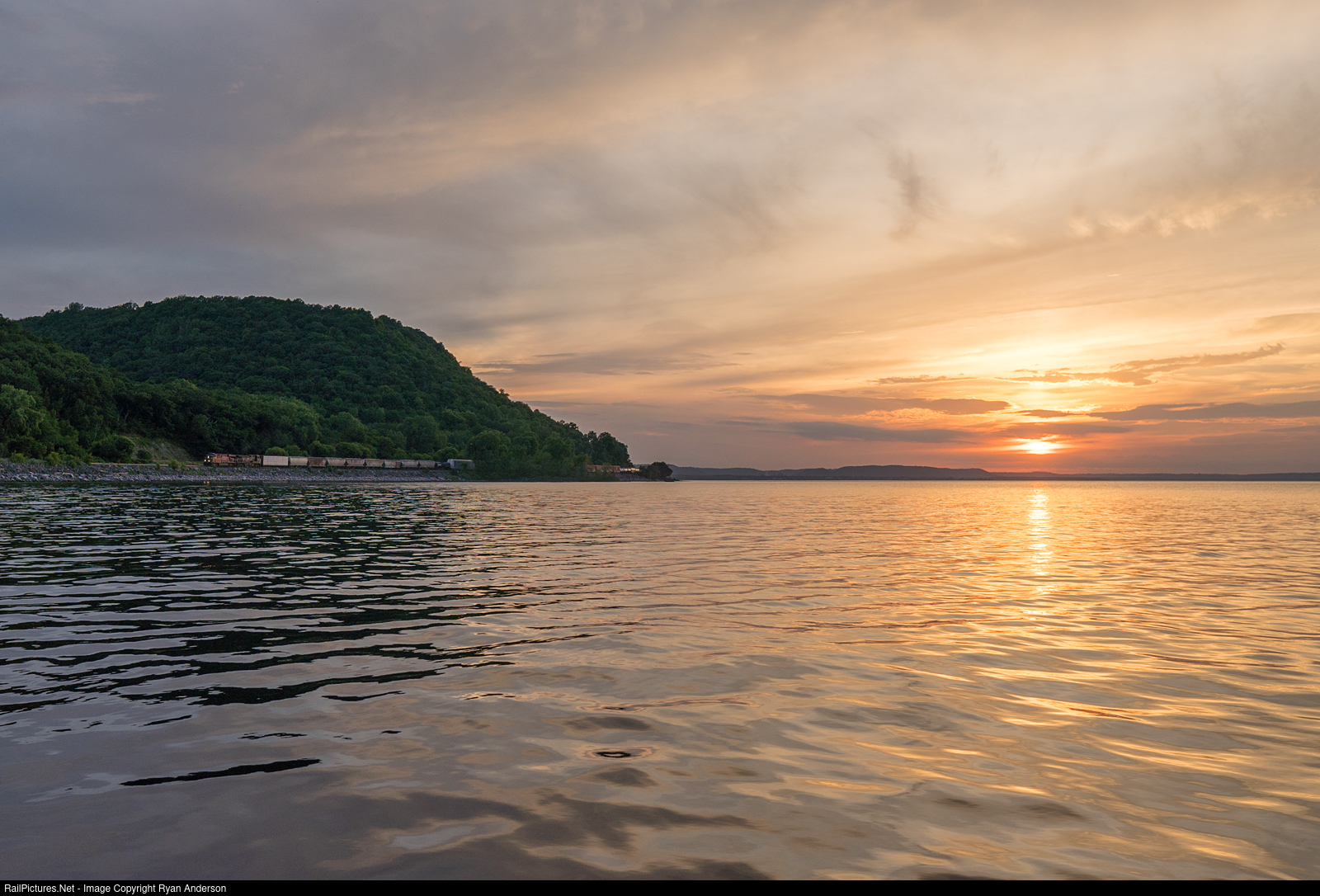 CP 8806 leads a eastbound freight train past Maple Springs just after the Empire Builder. Photo taken from a canoe.