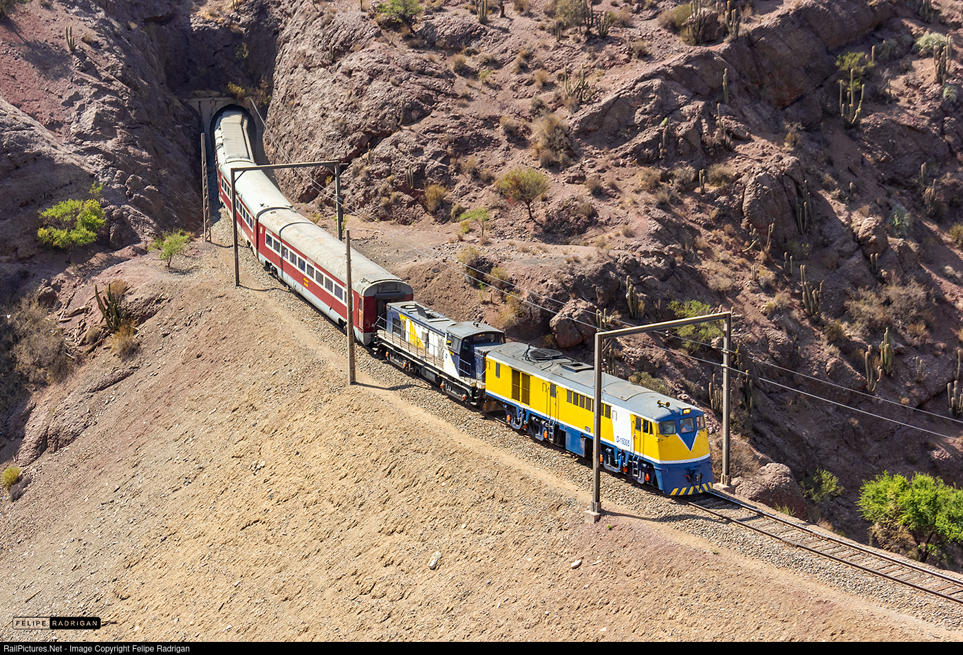 | The "Expreso del Recuerdo" heritage train, led by locomotive 16005, exits the Los Maquis tunnel and begins to circulate on the embankment that replaced the former viaduct of the same name. |