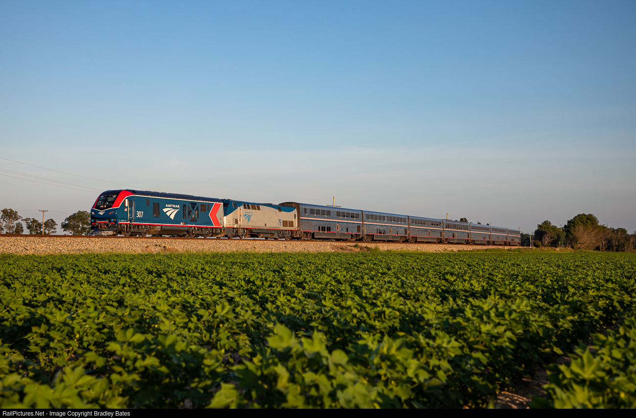 | Amtrak’s Northbound "The City Of New Orleans" Train #58 passes through Egypt, MS., with AMTK ALC-42 #307 on the point |