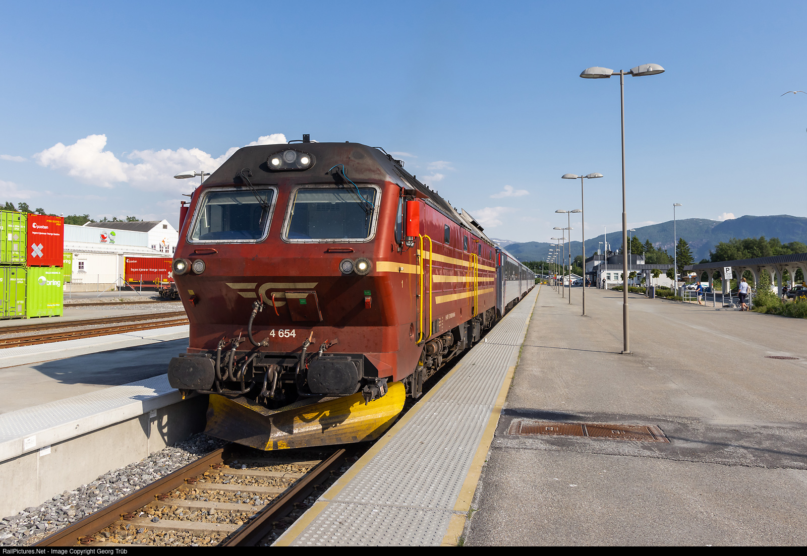 | 2450 kW diesellocomotive Di4 # 654 stopped in Fauske with train 471 from Trondheim to Bodø. 5 of this locomotives were built in 1980 by Henschel in Germany with an EMD 16-645E3B prime mover. All 5 locomotives (# 4.651 to 4.655) are now 42 years in daily service on the Nordlandsban. |
