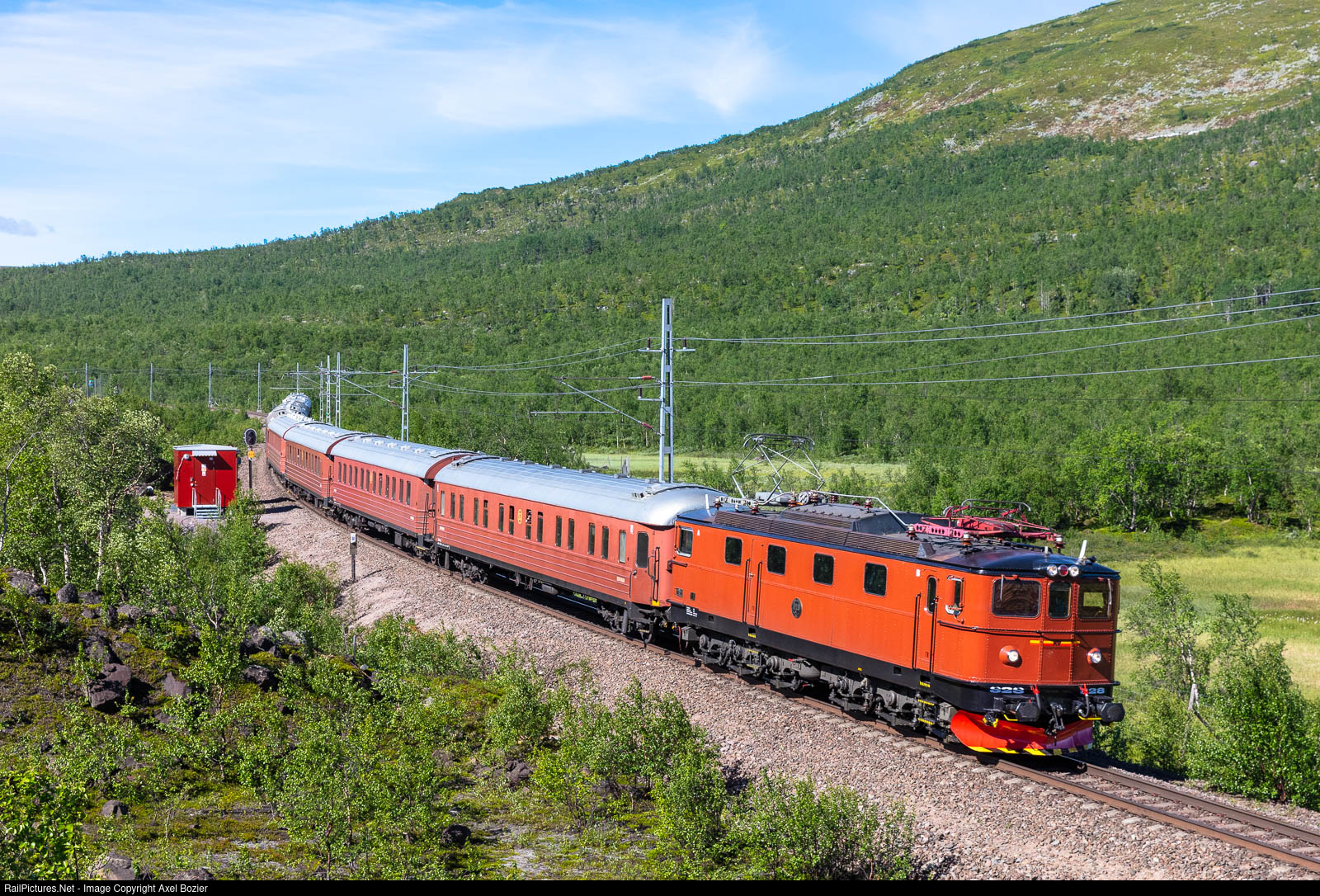 Electric locomotive Ma #828, formerly from the Swedish State Railways SJ (Statens Järnvägar) is pulling the special "Kalmar Veterantåg" bound for Björkliden. This Co'Co' electric locomotive was built by ASEA in 1953. It has a power output of 3,960 kW (5,310 hp).