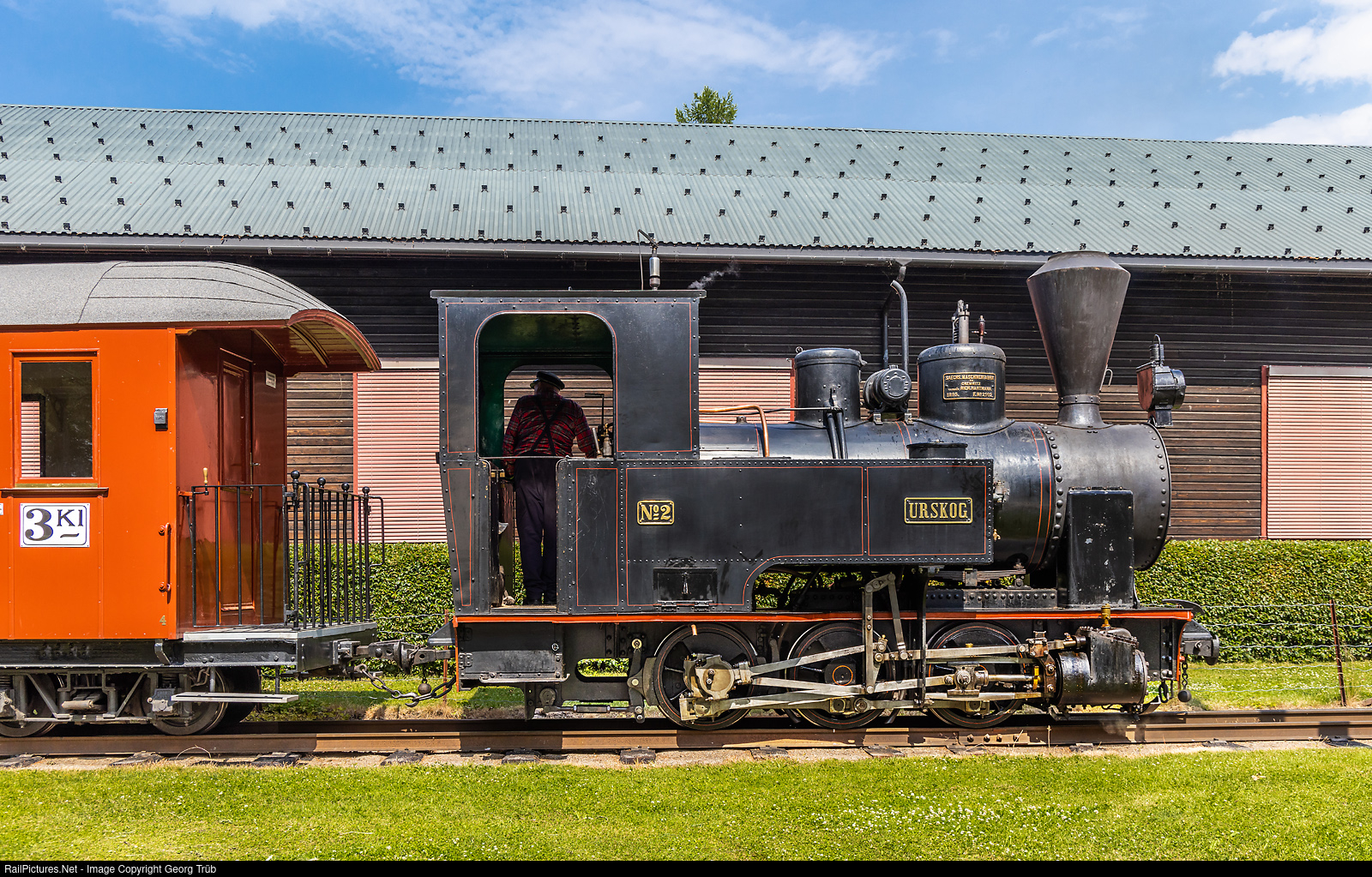 | 75 centimeter gauge 0-6-0 T steamlocomotive # 2 "Urskog" of the short railway on the area of the Norsk Railway Museum in Hamar. The locomotive was built in 1895 by Sächsische Maschinenfabrik zu Chemnitz, vormals Rich.Hartmann with construction # 2102 and run on the Urskog-Hølandsbanen. |