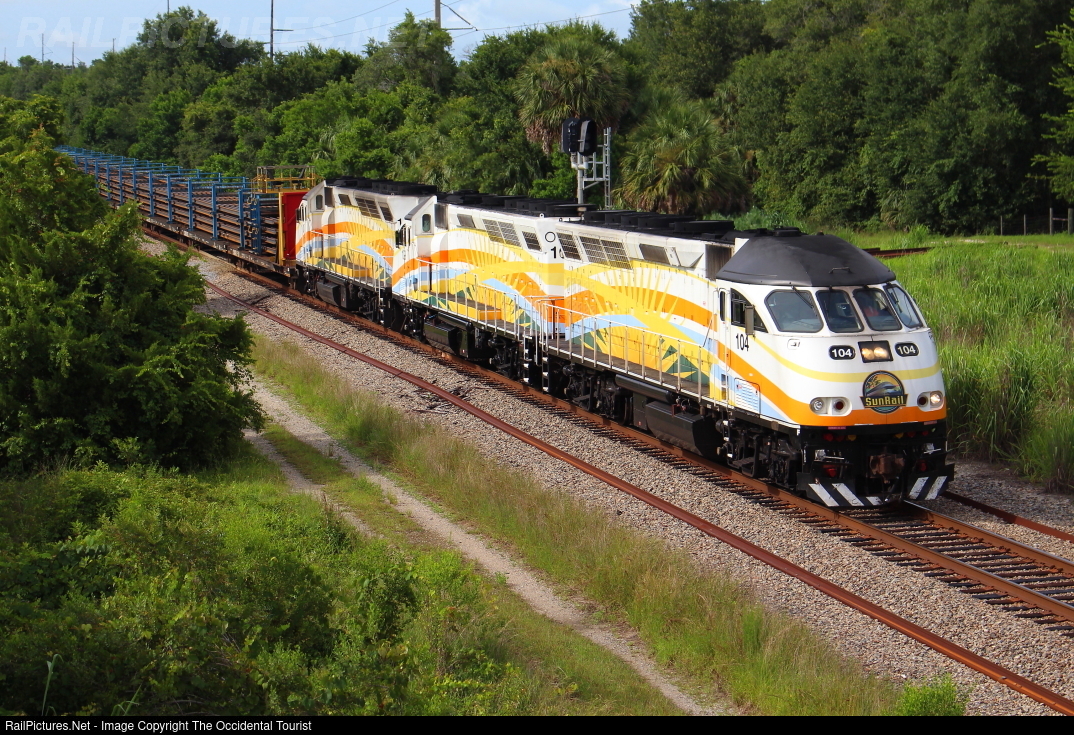 This portion of track, the northernmost of the 61-miles owned by the state for SunRail, sees fewer SunRail moves than anything else, ironically. Apart from some test runs, there have been very few sightings of actual SunRail power or trains here. As of yet, there is no commuter service between DeBary & DeLand, but moving forward, a rail train is seen at MP 755 by the defect detector leading up to "Orange City Hill". Noteworthy as its the first time I've seen three of their motors lashed up AND they actually turned the lead motor to face south.