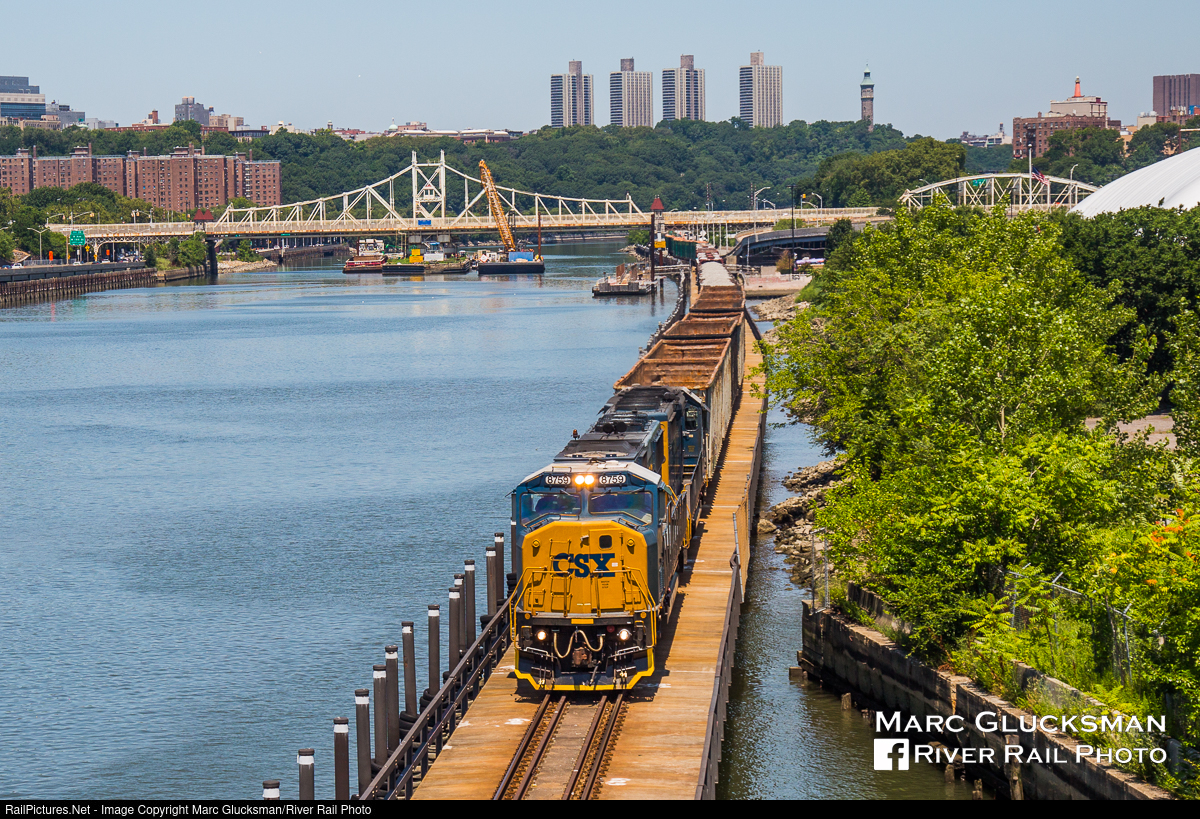 The Link In Plain Sight. On July 19, 2017, an unusual CSX daylight running of train Q701 was on its final miles as it rolled down the Oak Point Link in the Bronx, New York with CSXT 8759 (SD60M) leading. Opened in 1998, this track was built by the State Of New York in order to eliminate the use of the Port Morris Branch and the need to cross Mott Haven Junction. Initially intended to significantly increase the variety of freight and freight providers into New York City, today it is used only by CSX for a single road train in each direction each day (usually in darkness), with occasional appearances from a local train as necessary.