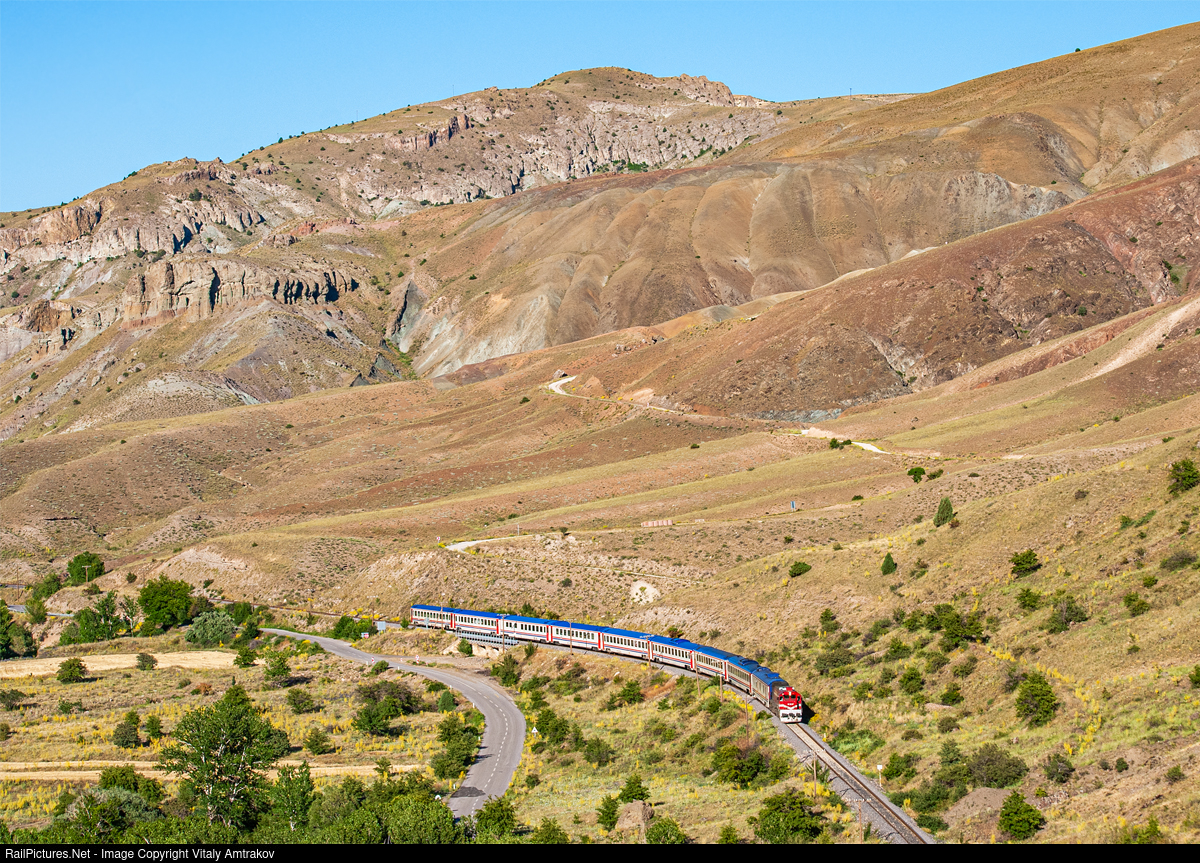 | The diesel locomotive DE-027 is hauling "Dogu Express" Kars - Ankara between Kemah and Eric. |