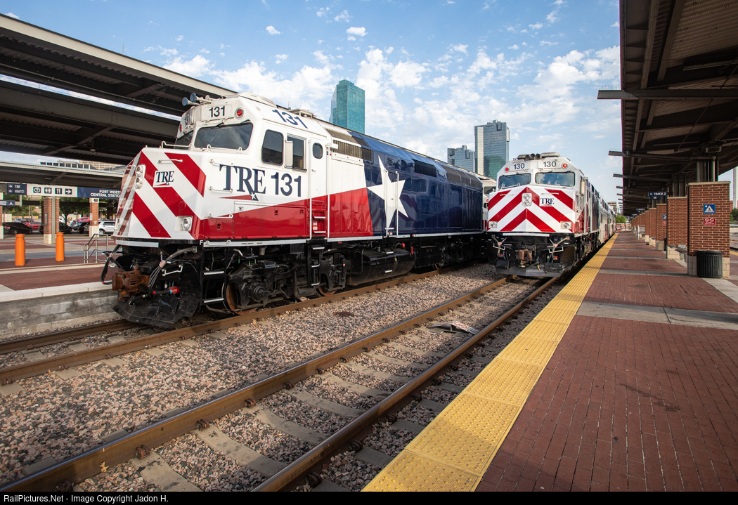 | Both of the TRE's F40 locomotives take a break at Fort Worth Central Station before continuing on their respective runs. 131 has been in and out of the shops recently so seeing it out, and alongside 130, was a pleasant surprise |