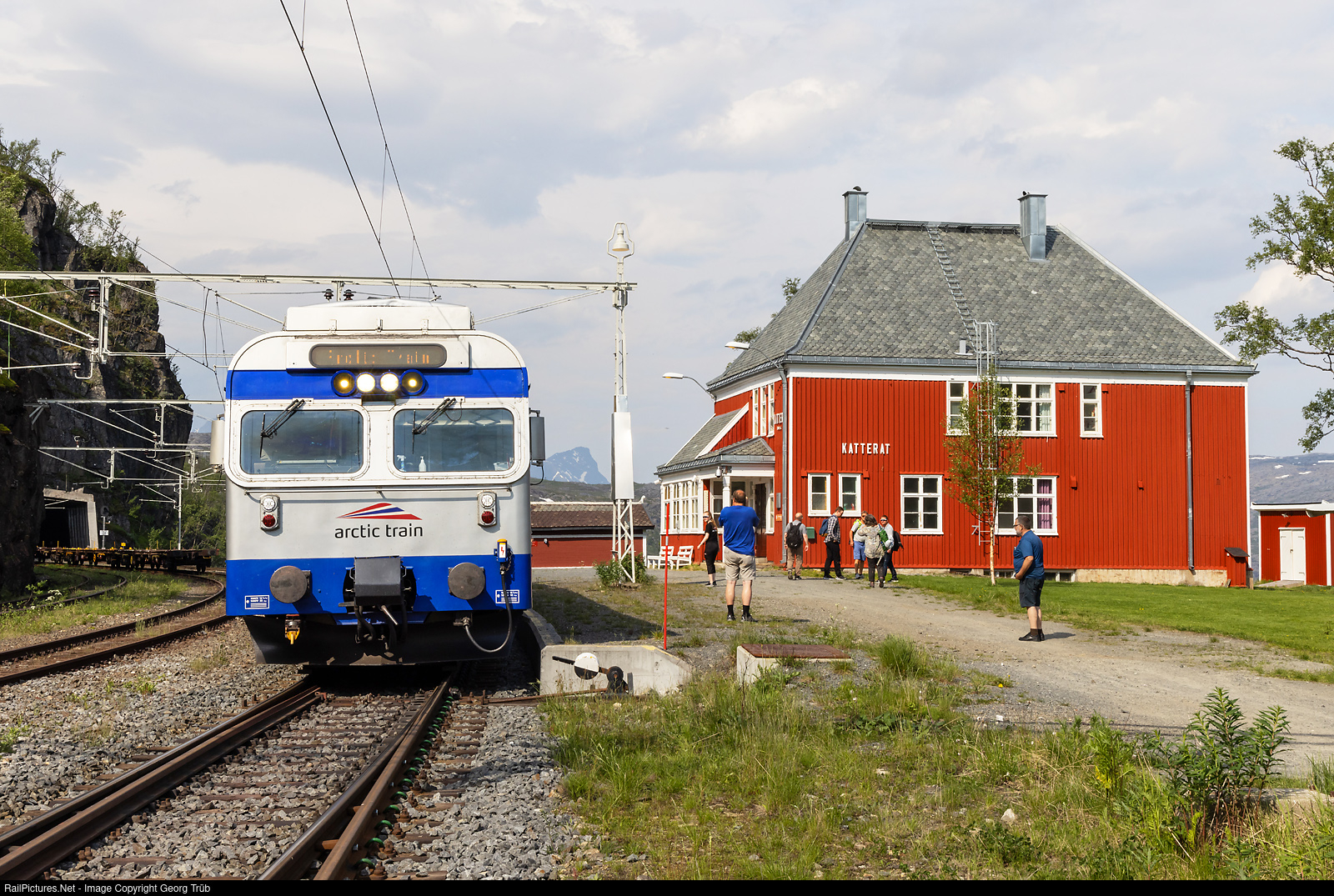 | Electric three car train BM 69 # 070 "VIKTORIAHAVN" of the Artic Train on a short stop in Katterat, high above the Rombaksfjord, running as tourist train 73453 over the Ofot railway line till Abisko Oestra in Sweden, and then back in the afternoon. The operator is Tm Togdrift AS in Narvik. The railcar was taken over from Norske Tog in 2018 and circulated on the Gjøvikbane before.