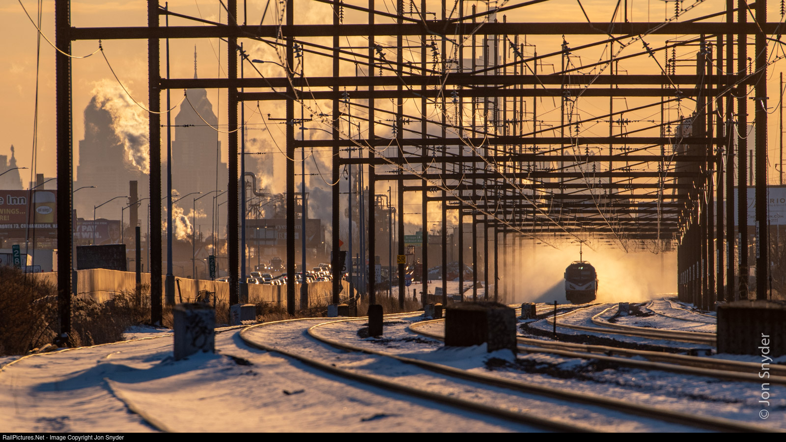 A northbound Amtrak train lead by ACS-64 number 616 plows through a very cold Tacony station just north of Philadelphia on March 6, 2022. It was about 11 degrees that afternoon so the snow was dry and fluffy, making for blizzard conditions as the train passed at about 90-100 mph.
