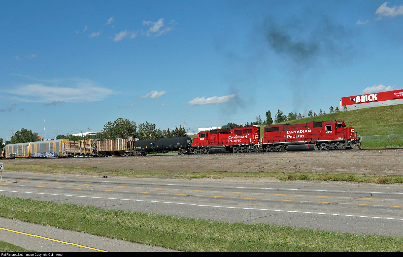 | Ex SOO Line GP38-2, CP 4403 working with GP20C-ECO, CP 2221 are using a little of the Brooks Sub as a lead as they build a train in Alyth Yard. |