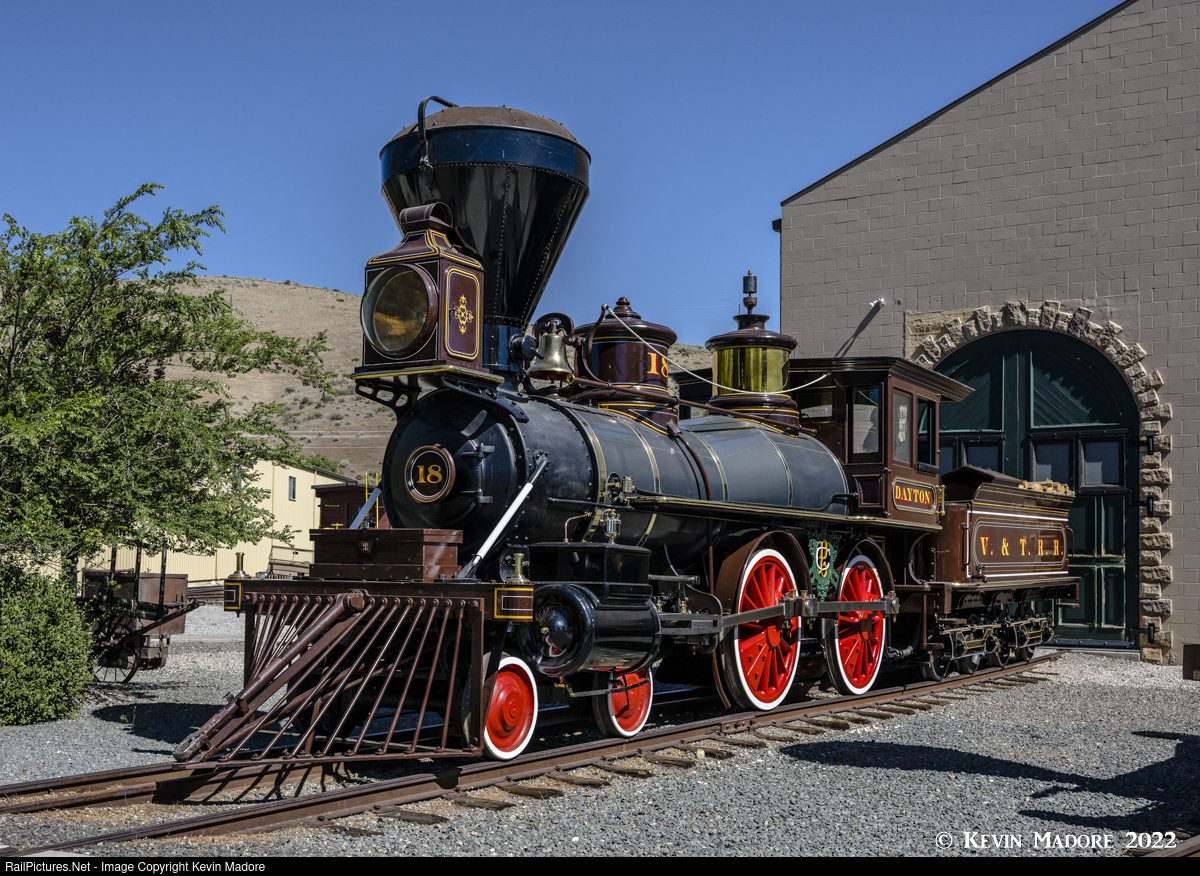 V&T Survivor: #18 "Dayton". This beautiful, 1873-vintage 4-4-0 is Number 18, Dayton. Unlike many of her sisters, she didn't come from back east. She was built in Sacramento, in the shops of the Central Pacific Railroad, the very same shops that produced the famous "Jupiter", just a few years earlier. With a weight of 78,000 lbs on the drivers, she and sister "Columbus" were the heaviest locomotives yet purchased for the new Nevada short-line. A wonderfully ornate locomotive, she served the line for roughly 65 years, being most noted for her role as "the snowplow engine". Numerous photos exist of this engine pushing an enormous wedge plow.